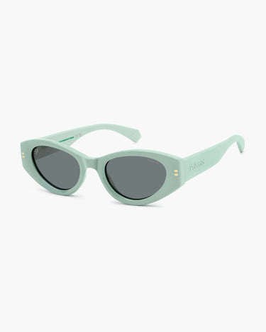 Eleganti e femminili, gli occhiali da sole Polaroid PLD 6243/S/X - 1ED  sono pensati per la donna che ama stile, eleganza e protezione in ogni momento. La montatura in policarbonato eco di colore verde unisce leggerezza, resistenza e un tocco di originalità, perfetta per completare outfit alla moda. Le lenti grigie polarizzate in triacetato offrono una protezione totale dai raggi UV, riducendo i riflessi e garantendo una visione nitida e confortevole anche nelle giornate più soleggiate. La forma cat eye, femminile e sofisticata, valorizza i lineamenti del viso conferendo un look contemporaneo e glamour.