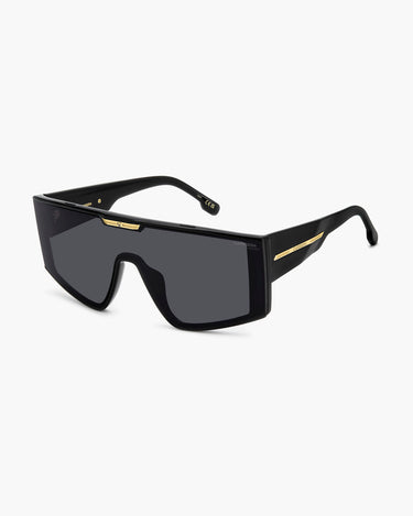 Colorati, leggeri e audaci, gli occhiali da sole CARRERA VICTORY C 18/S - 807 da donna si distinguono per il loro design mascherina futuristico e accattivante. La montatura in poliammide bio color Total Black unisce stile sostenibile e comfort, offrendo una vestibilità leggera e resistente. Le lenti in policarbonato Grigie donano un effetto visivo unico e garantiscono una protezione solare efficace,