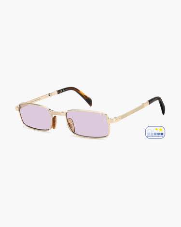 I nuovi occhiali da sole da uomo modello DB 99/ORIGAMI - T5U combinano montatura in metallo color oro corno con lenti in poliestere viola grigio fotocromatiche che si adattano automaticamente alla luce ambientale. La forma rettangolare garantisce uno stile moderno e raffinato, mentre le aste in metallo assicurano robustezza e comfort. Ideali per chi cerca un accessorio funzionale e versatile senza compromessi sull’eleganza.