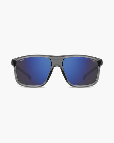 Prestazioni, e design sportivo si fondono negli occhiali da sole Carrera Ducati CARDUC 056/S - KB7, pensati per l’uomo che ama la velocità e lo stile dinamico. La montatura rettangolare in poliammide grigia offre leggerezza, resistenza e un look grintoso ispirato al mondo Ducati. Le lenti in policarbonato Blu Cielo Specchiato assicurano un’eccellente protezione dai raggi UV e una visione ottimale in ogni condizione di luce